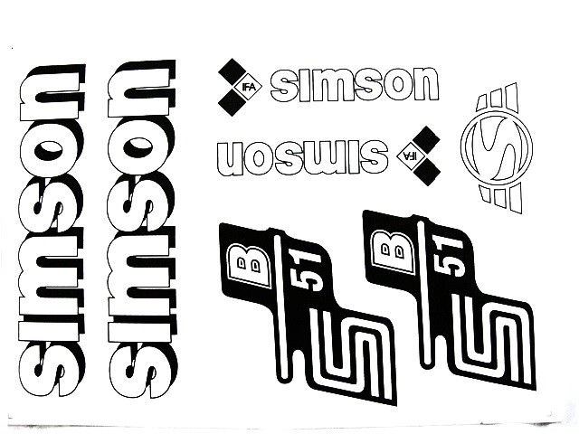 DECAL SET B51 /WHITE/ – For the following motorcycle, scooter: SIMSON 51. Origin: EU. Please make sure about product availability by sending an e-mail to our support in order to avoid supply shortage!